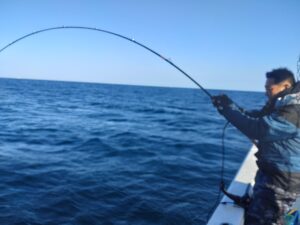 南の風でゆっくりとしたサカ潮でした。午前中大型マダイやヒラマサがバタバタと当たりましたが、午後より渋くなりました。サカ潮模様ばかりで食いは渋くなるばかりです。