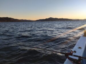 南の風でサカ潮模様でした。回って来るヒラマサ狙いでした。