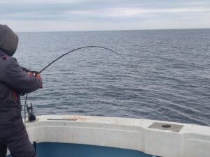 南からの風がやや強く本潮も動いていました。先週良かった青物の回遊も無い中、なんとか魚の顔が見れました。