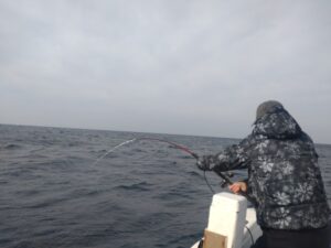 友達と 南、西の風でやや速いサカ潮でした。渋い中170〜200mでヒラマサやマダイが食って来ました。