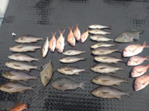 友達と ほど良い感じの本潮でした。いちにちをとうして、良型イサキやマダイがボツボツとアタリました。